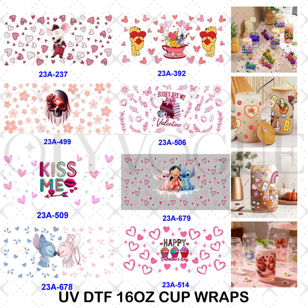 Wholesale 1pcs/5pcs Valentine's Day Cartoon with Various Heart-shaped Flowers 16oz Cup UV DTF Wraps OLY Exclusive