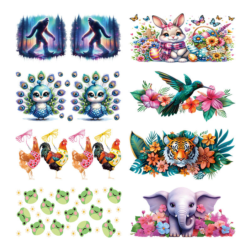 Wholesale Colorful flowers cute animals 16oz Cup UV DTF Wraps
