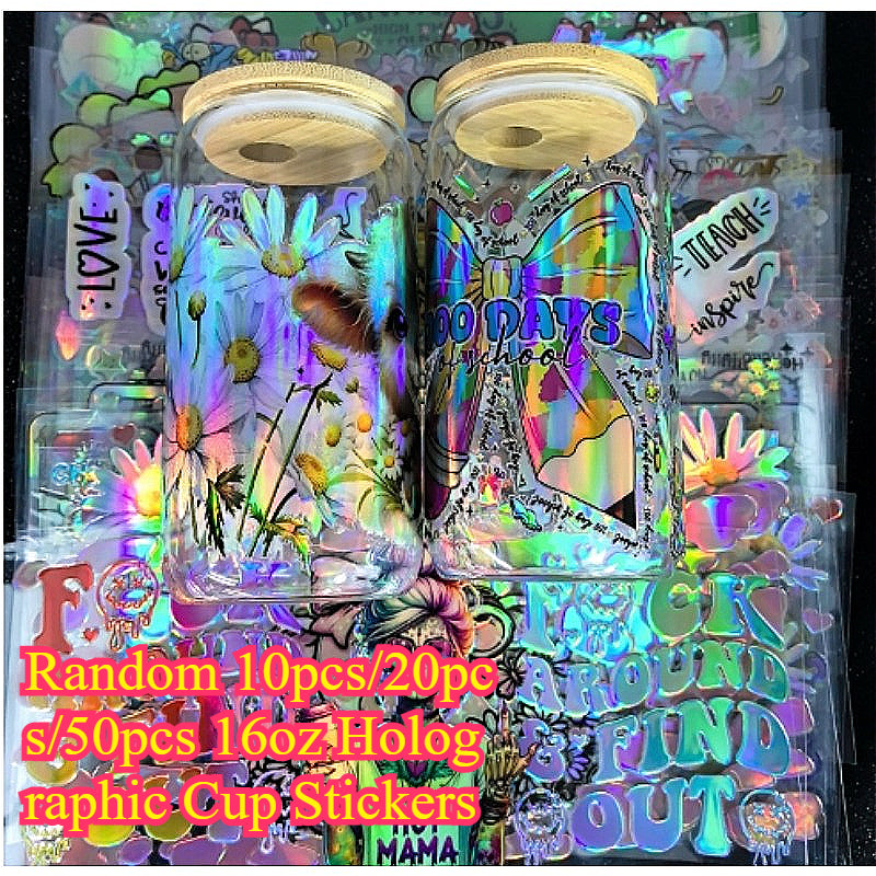 Wholesale 16oz Holographic Steel Cup UV DTF Stickers Random 10pcs/20pcs/50pcs Wraps for DIY Craftlaser wraps