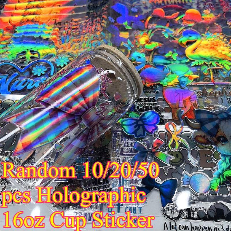 Wholesale 16oz Holographic Steel Cup UV DTF Stickers Random 10pcs/20pcs/50pcs Wraps for DIY Craftlaser wraps