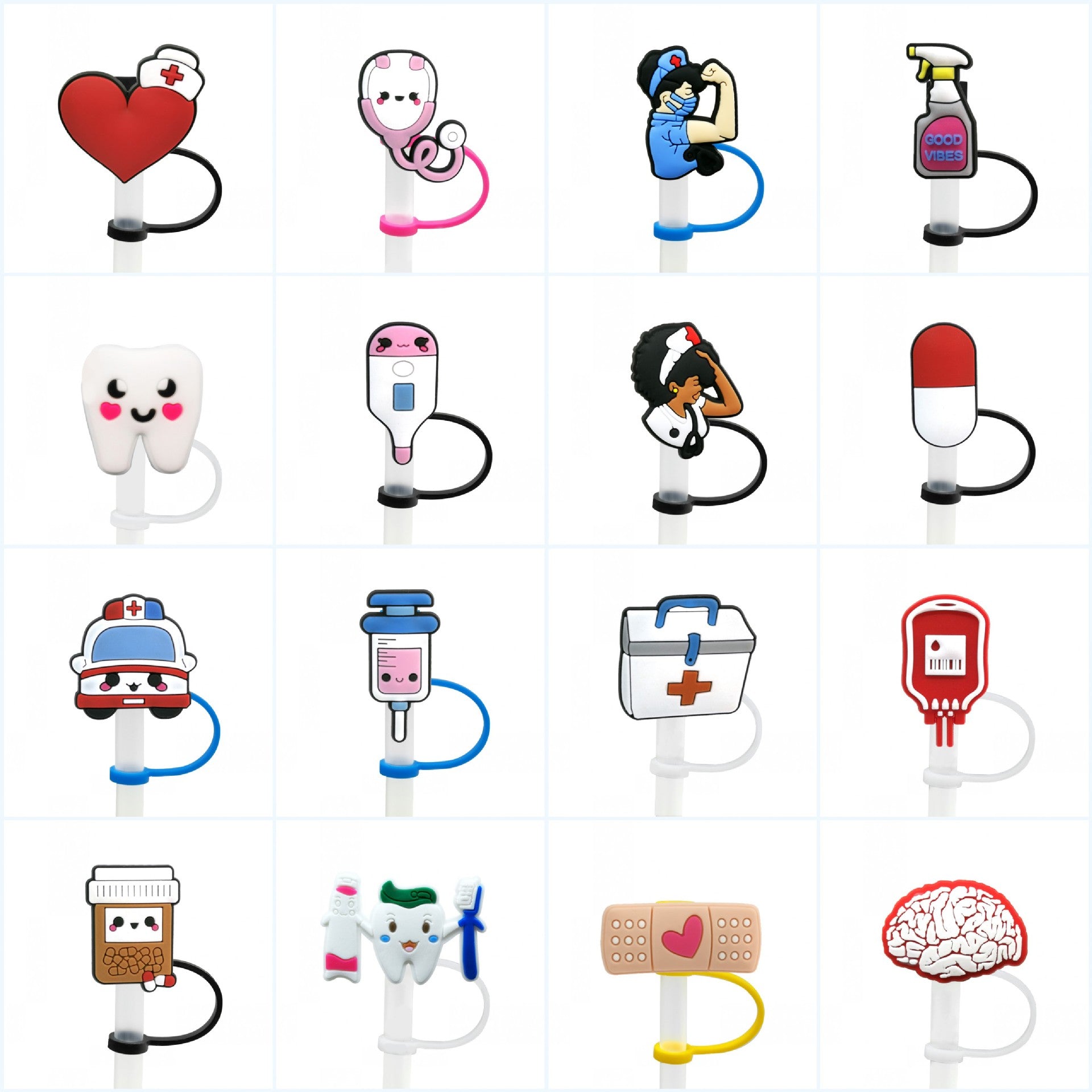 Wholesale 10PCS Doctor and Nurse Silicone Cartoon Tube Straw Hat