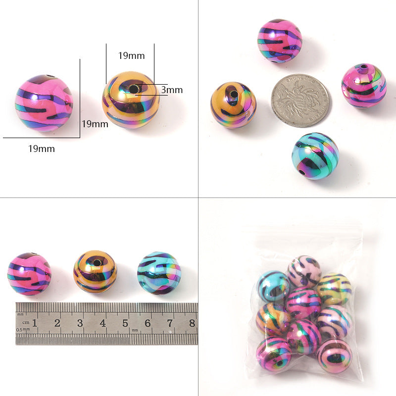 Wholesale 10pcs/pack Acrylic UV Plating Zebra Color Stripe Straight Hole Round Beads
