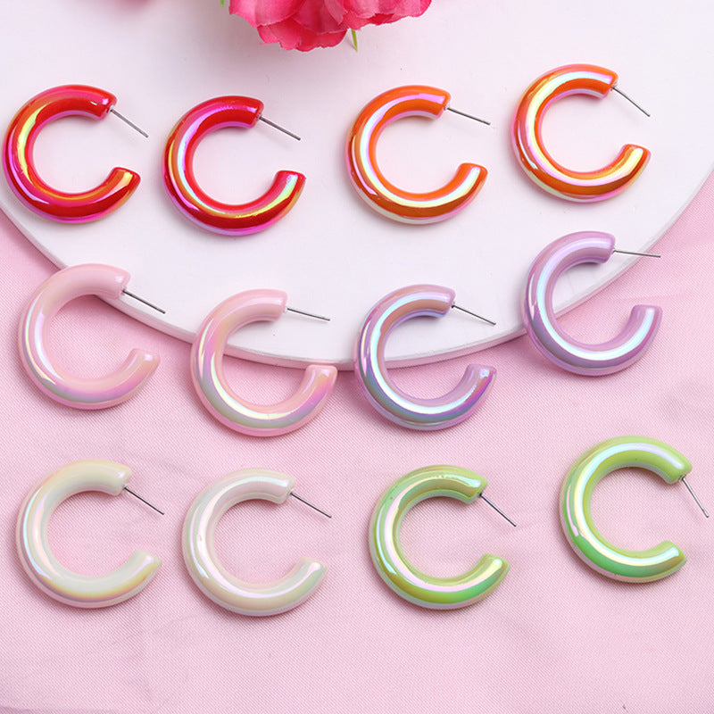 Wholesale 2pairs/pack Fantasy Fluorescent Color C-ring Acrylic Earrings