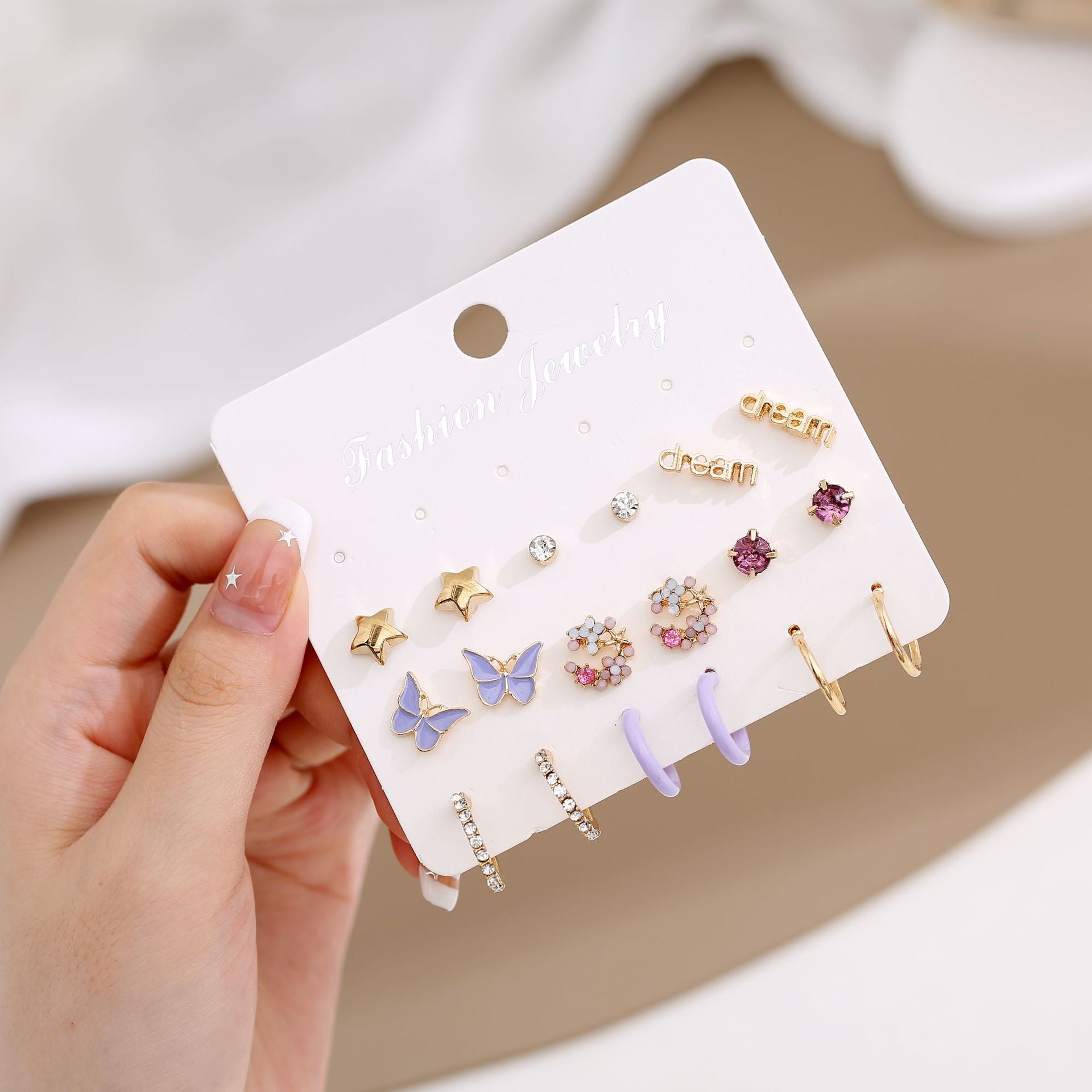 Wholesale Acrylic Butterfly Flower Love Earrings 9-piece Set