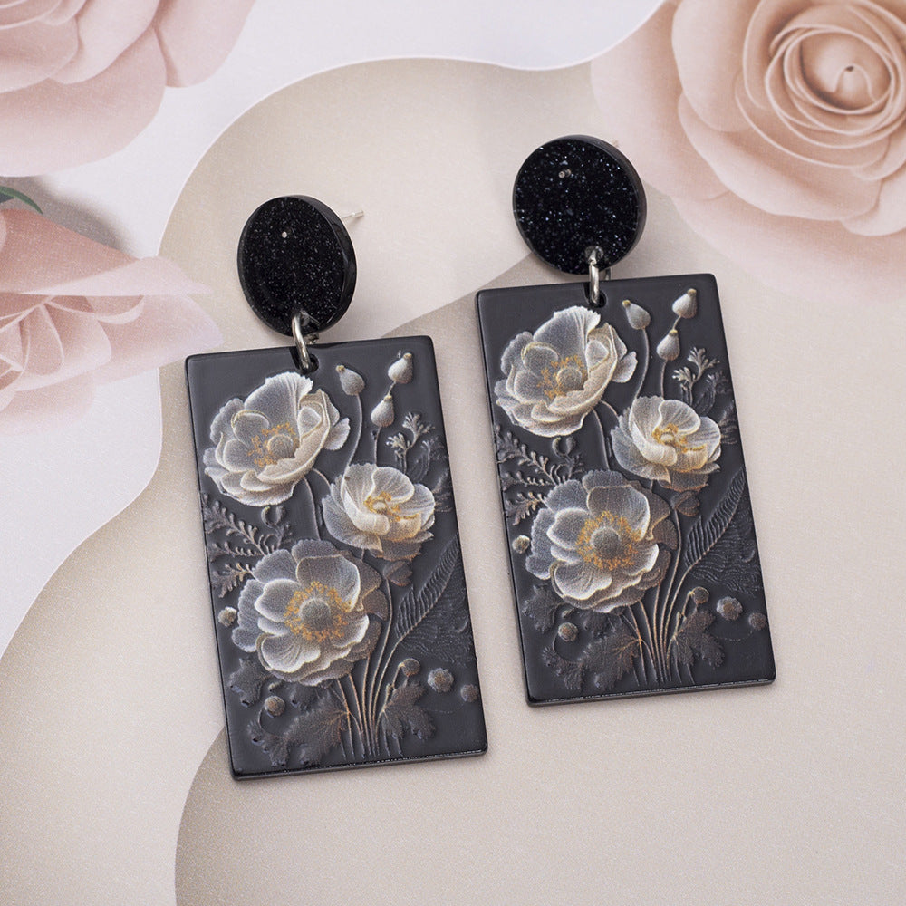 Wholesale Geometric Rectangular Poppy Flowers 3D Printed Vintage Acrylic Earrings