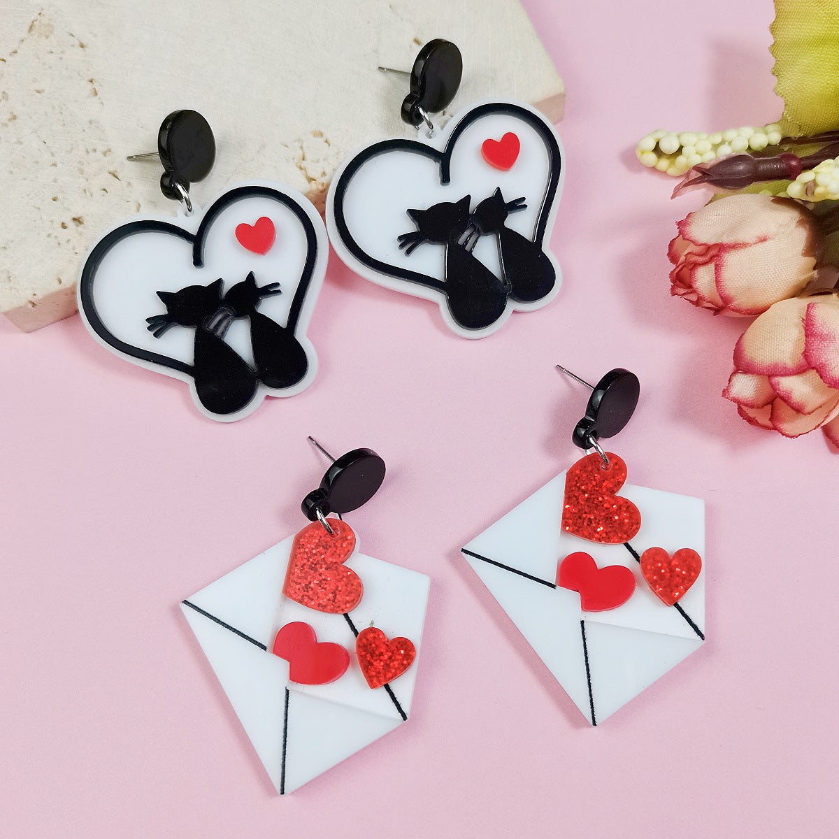 Wholesale Valentine's Day Cat Love Letter Acrylic Earrings