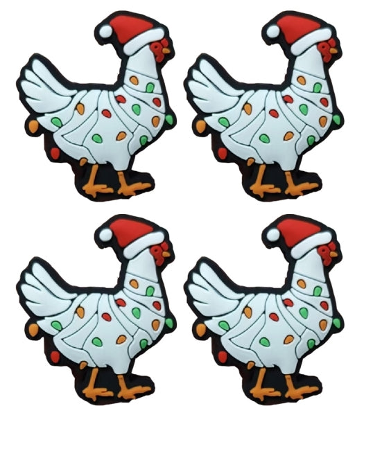 Wholesale 10pcs 2D White Christmas Rooster Silicone Beads DIY Beads