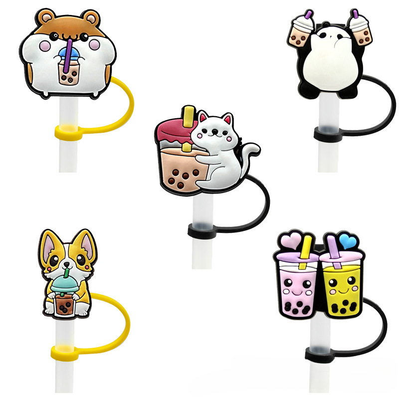 Wholesale 10PCS Cartoon Beverage Silicone Straw Tube Cap