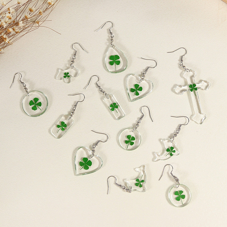 Wholesale 10pcs Four-leaf Clover Natural Specimen Earrings