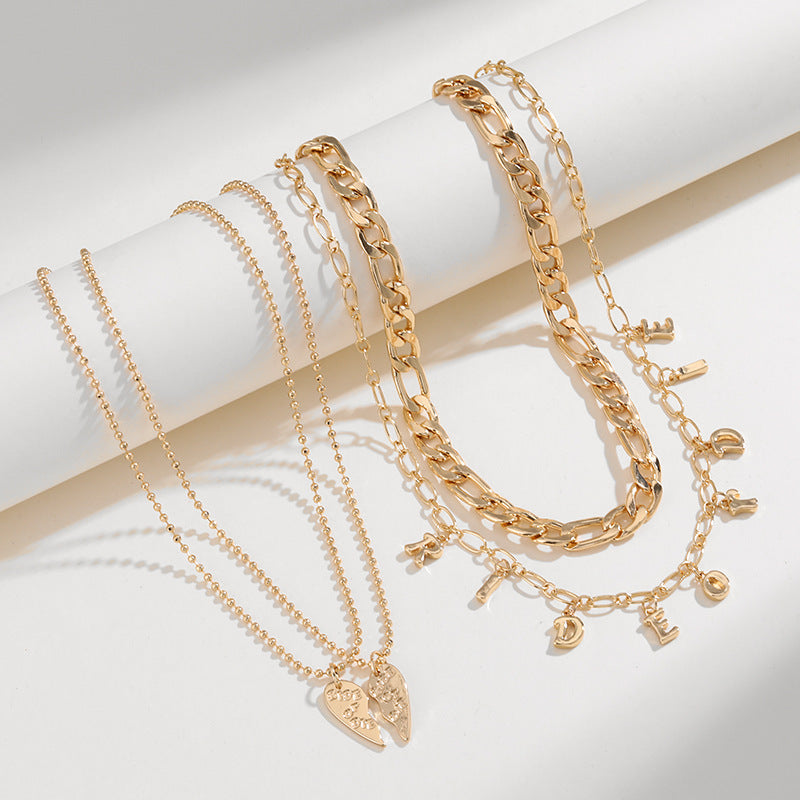 Wholesale 10PCS Valentine's Day Double Layer Love Letter Necklace