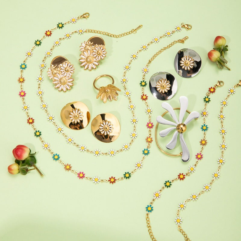 Wholesale 18k Gold Stainless Steel Daisy Gold Color Daisy Chain Necklaces