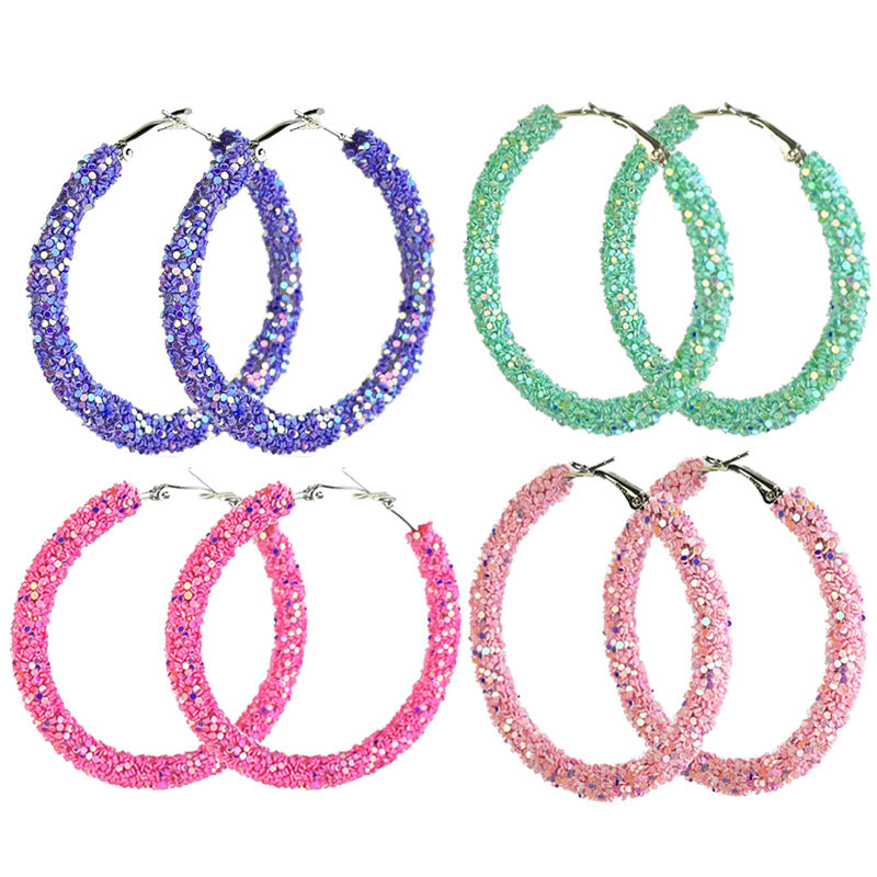 Wholesale 2 Pairs/pack Pink Macaron Color Matching, Glitter, Festive Atmosphere, Candy Color, Large Earrings