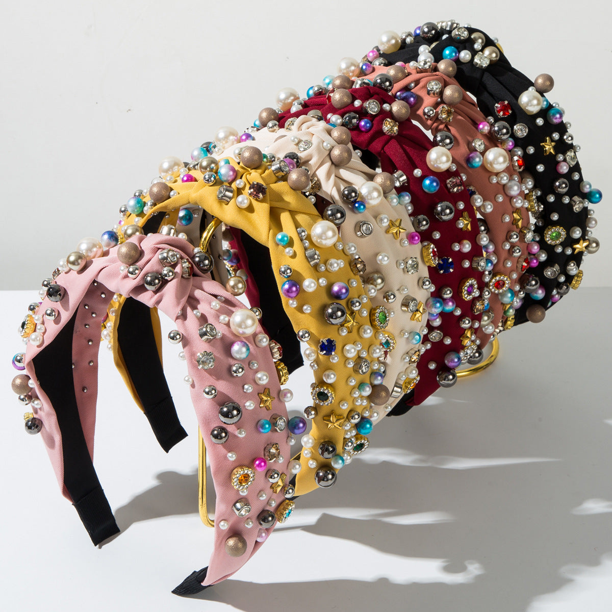 Wholesale fabric knotted hairband heavy nail pearl color high-quality hairband all-match beautiful hair accessories
