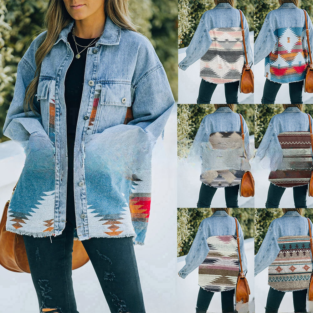 Wholesale Aztec Denim Patchwork Woolen Jackets