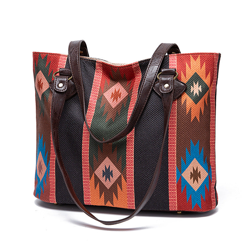 Wholesale Aztec Pattern Vintage Cotton Linen Shoulder Tote Bag