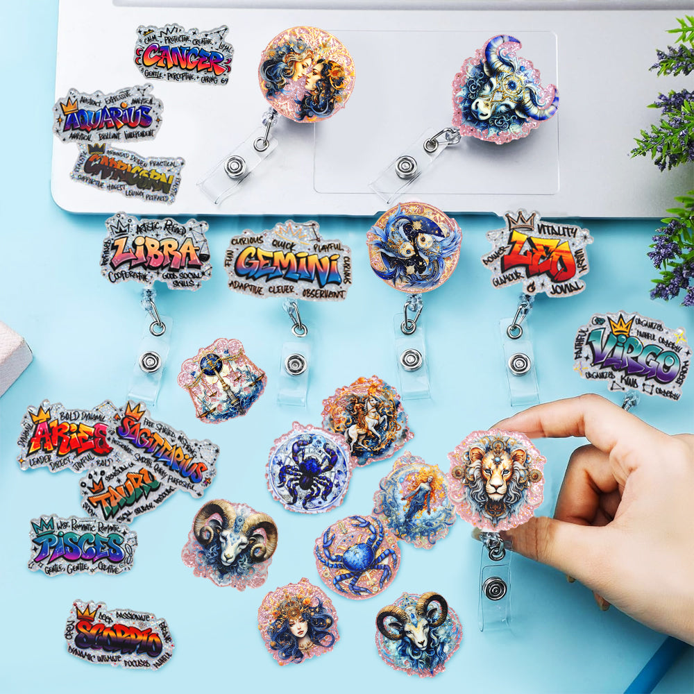 Wholesale 12pcs/Pack Twelve Zodiac Signs DIY Acrylic Flatbacks for Badge Reels Keychains