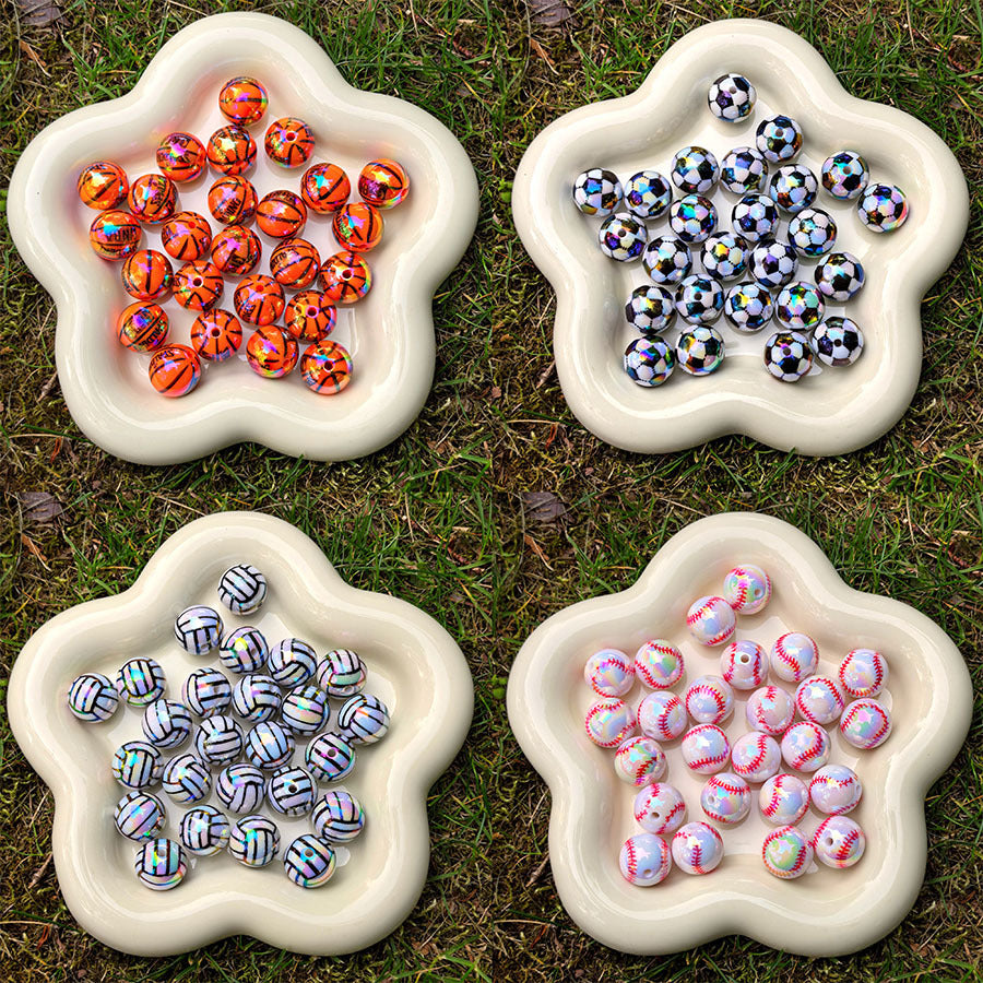 Wholesale 20pcs UV Plated Basketball with Letters Acrylic Beads
