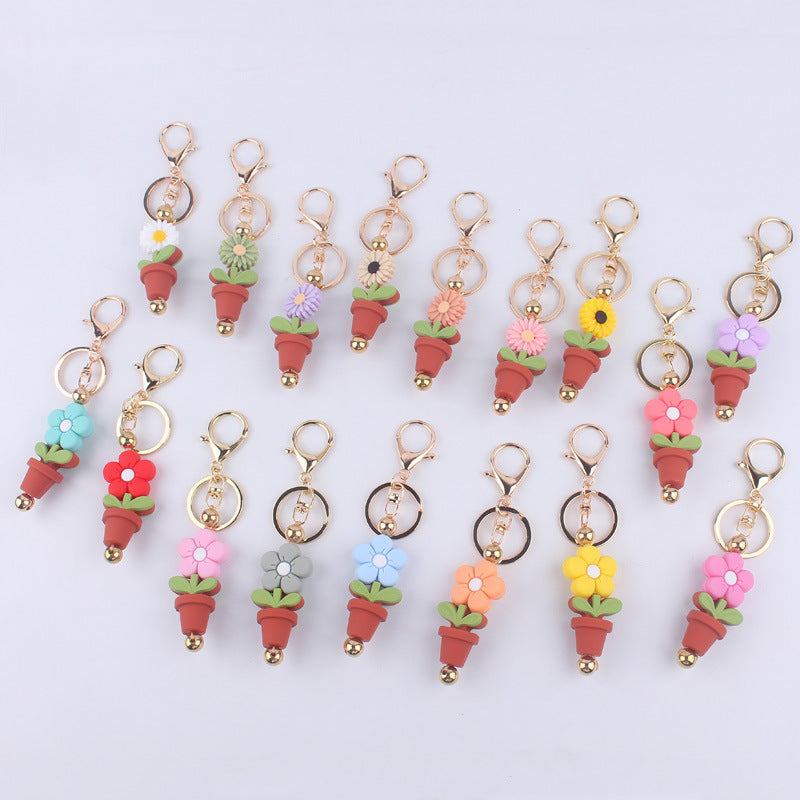 Wholesale Cartoon Daisy Flower Silicone Bead Keychain