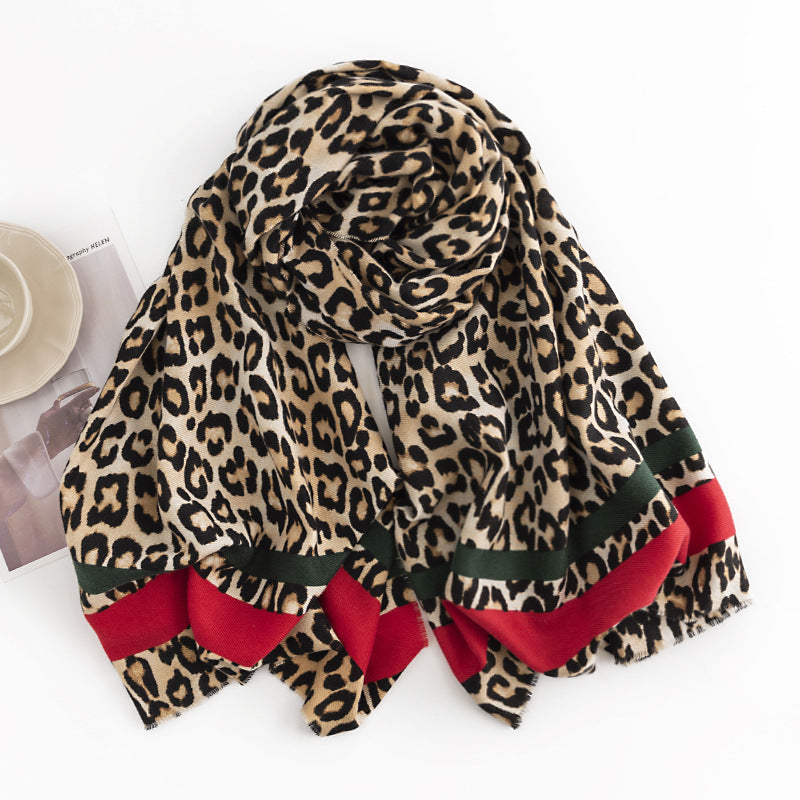 Wholesale Winter Imitation Cashmere Red Stripe Leopard Print Scarf