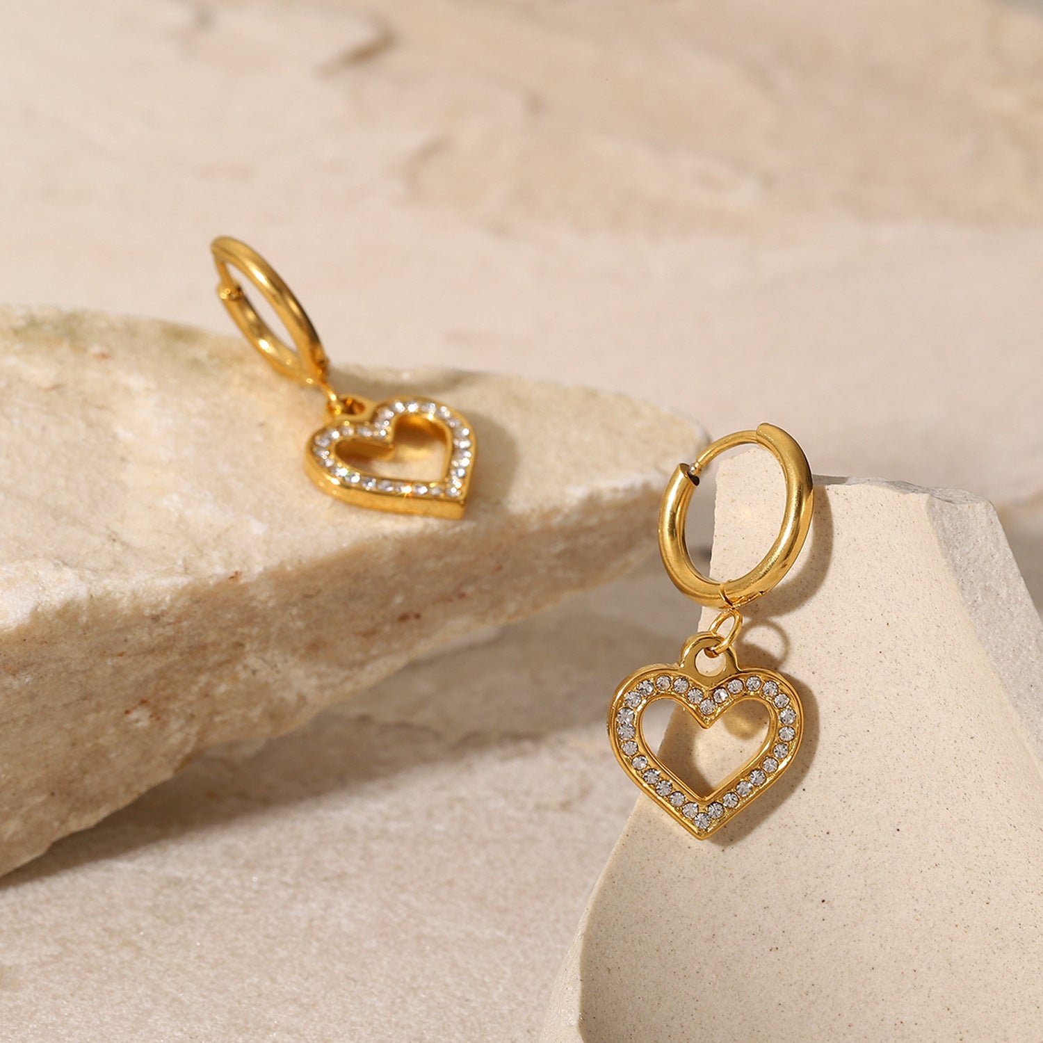 Wholesale 18K Gold Stainless Steel Cutout Love Zircon Earrings