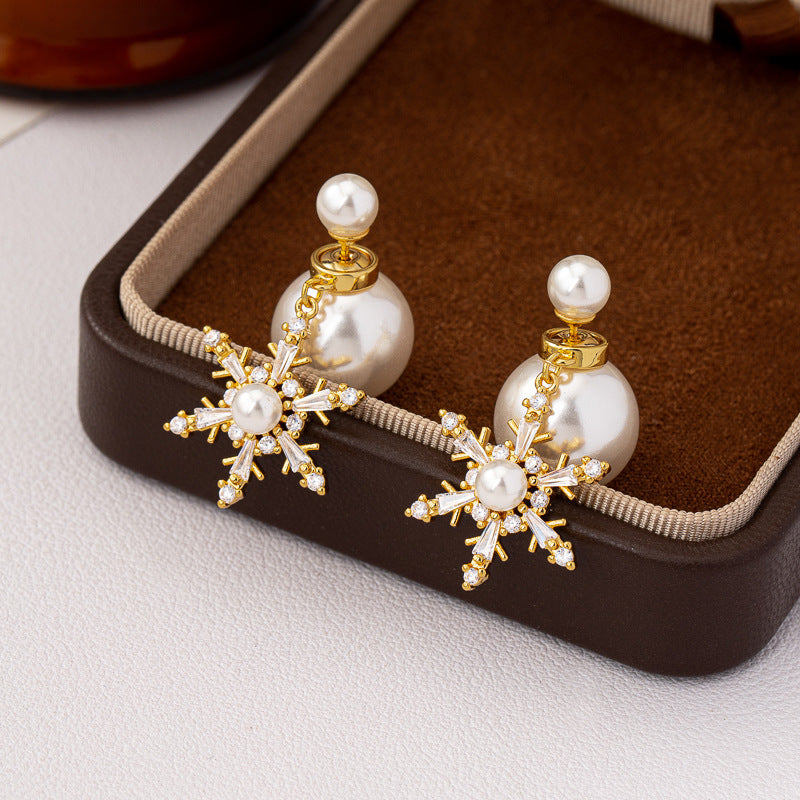 Wholesale Christmas Snowflake Pearl Silver Needle Earrings