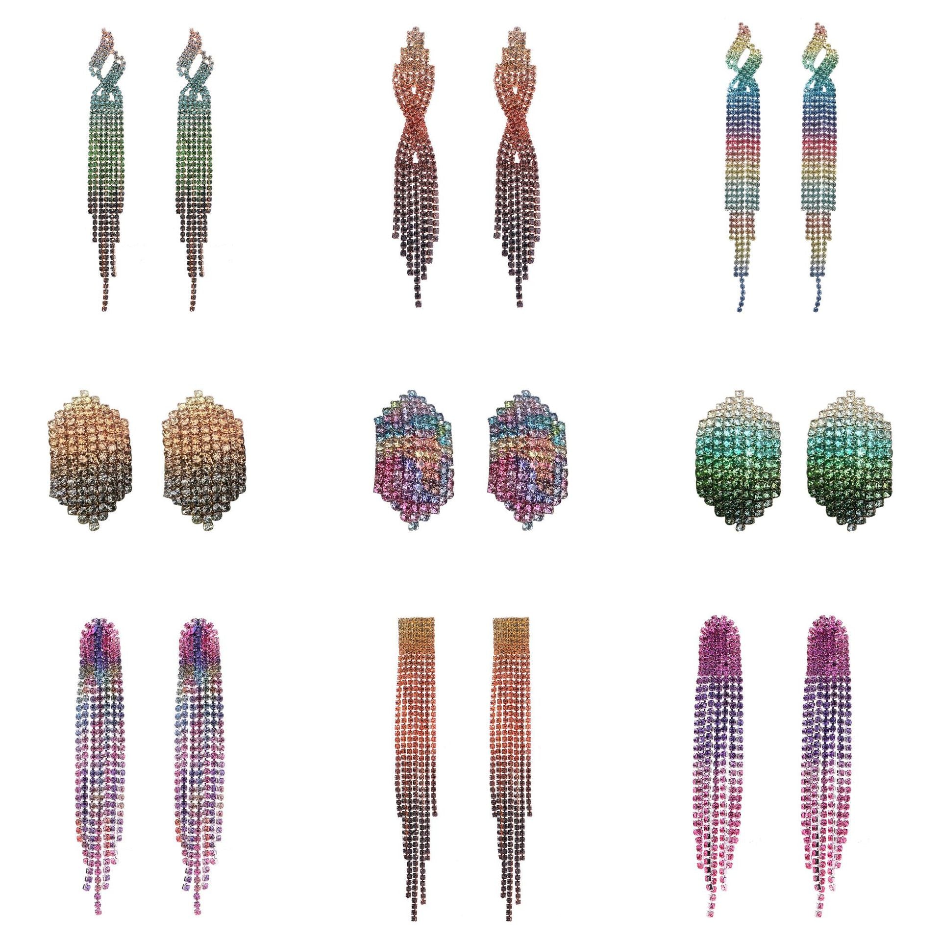 Wholesale Colorful Water Diamond Long Claw Chain Tassel Alloy Earrings
