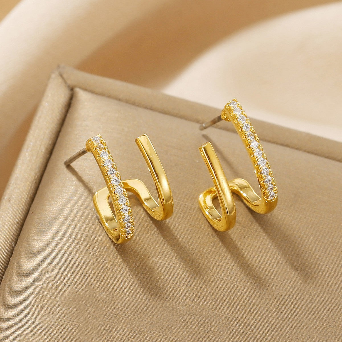 Wholesale Rose pearl zircon geometric shaped Blingbling Earrings