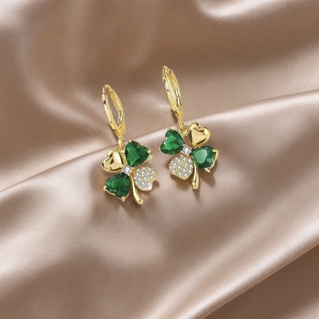 Wholesale St. Patrick's Day four-leaf clover Blingbling Earrings