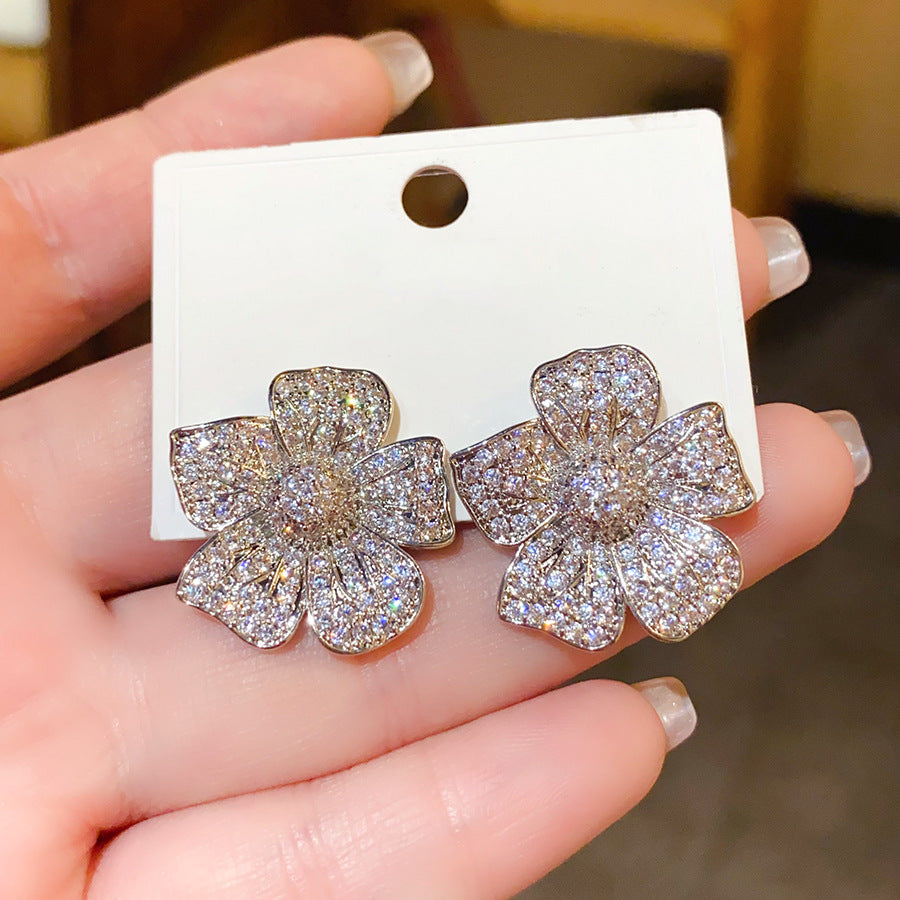 Wholesale Sparkling diamond studded flower silver needle earrings