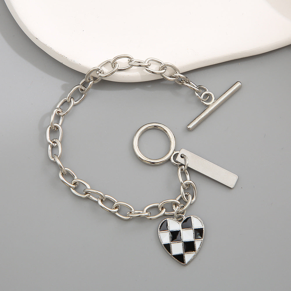 Wholesale Black and White Checkerboard Heart Alloy Bracelet