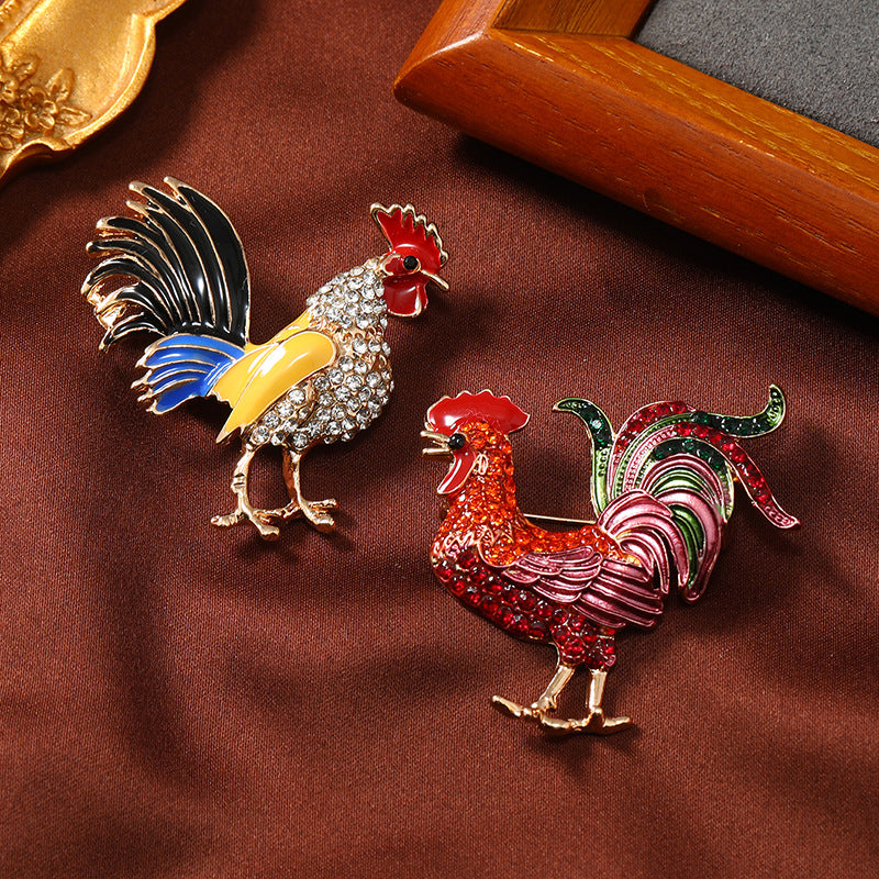 Wholesale Vintage Diamond Enamel Rooster Brooch