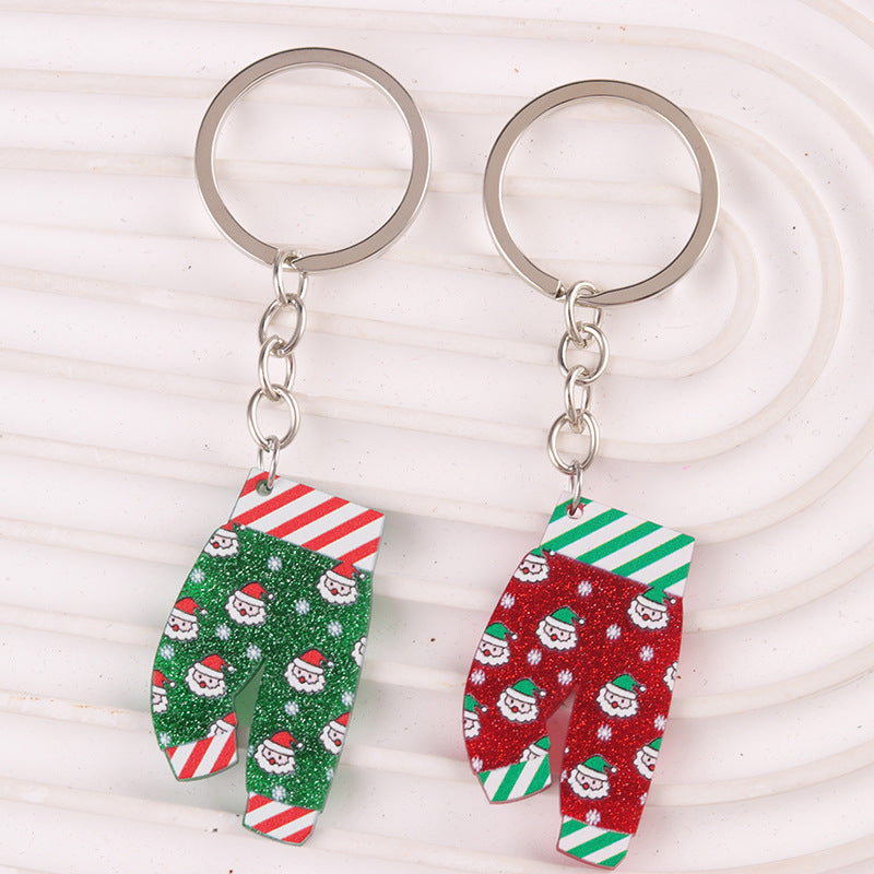 Wholesale Cartoon Fun Funny Colorful Christmas Pants Acrylic Fashion Christmas Santa Claus Keychains