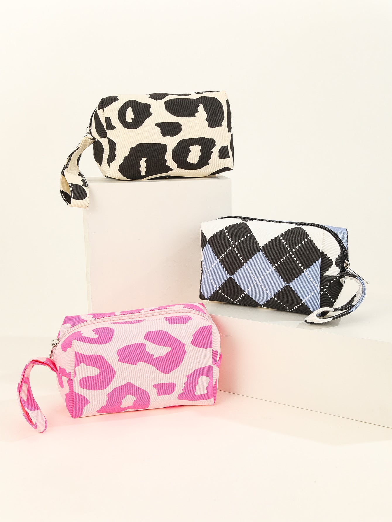 Wholesale Canvas Print Portable Leopard Print Checkerboard Pattern Cosmetic Bag