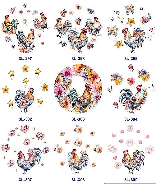 Wholesale 16pcs Colorful Flower Rooster 16oz Cup Lid Stickers