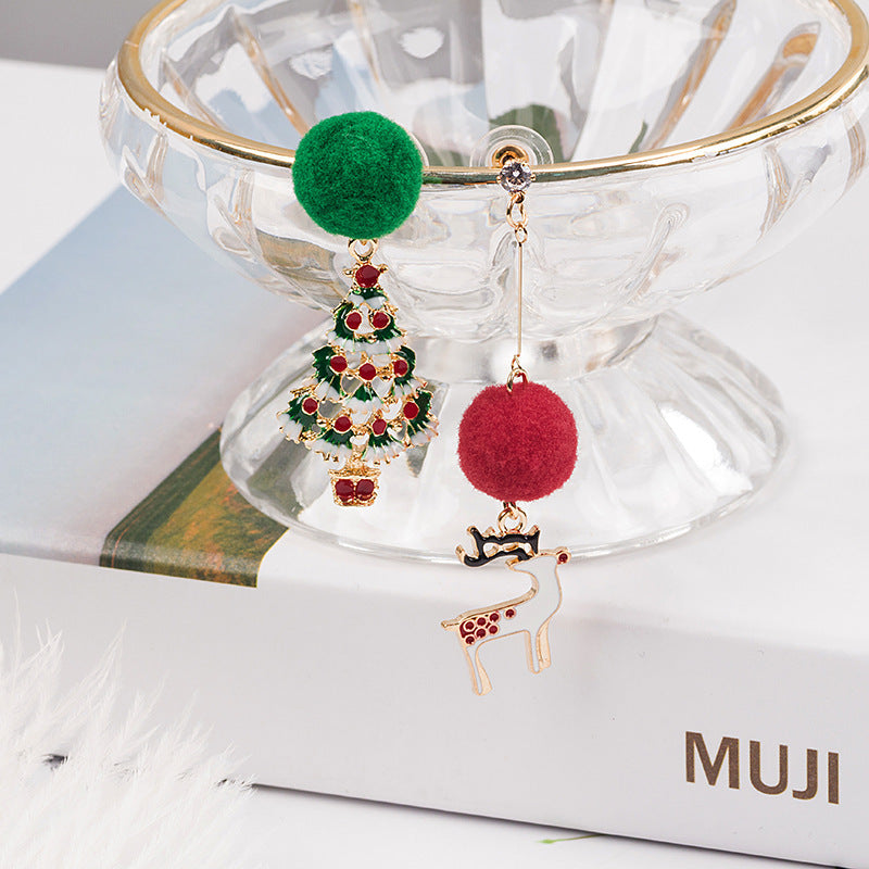 Wholesale 925 Silver Needle Christmas New Asymmetric Hair Ball Earrings