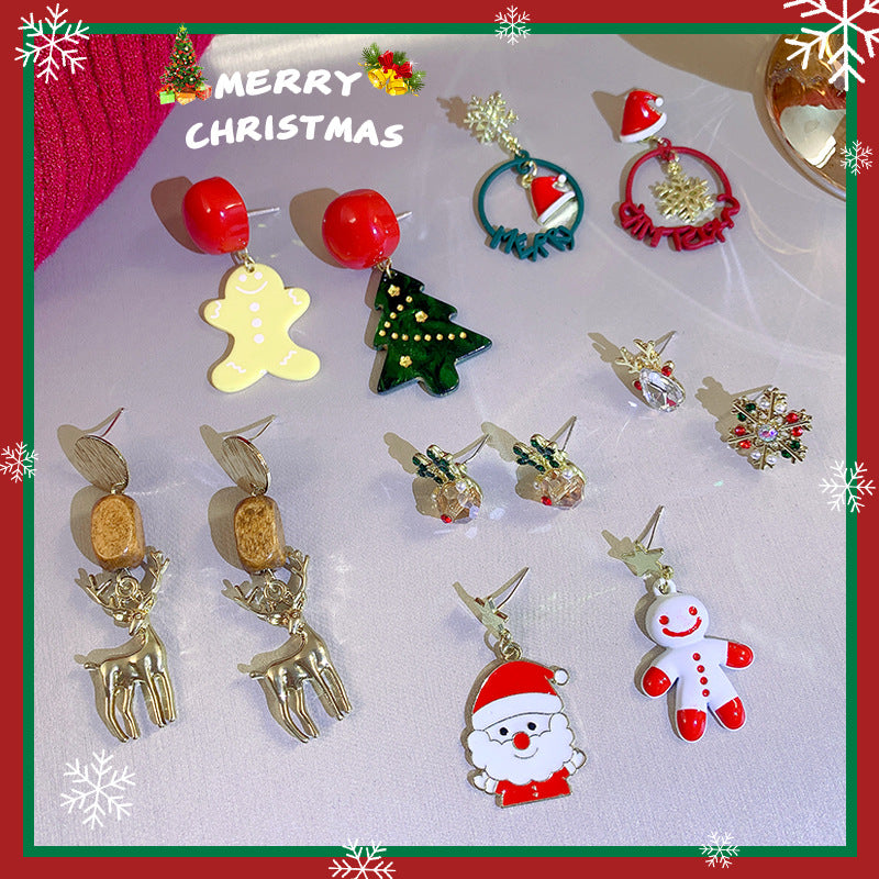 Wholesale Christmas Silver Needle Studded Diamond Oil Drip Asymmetric Tassel Earrings