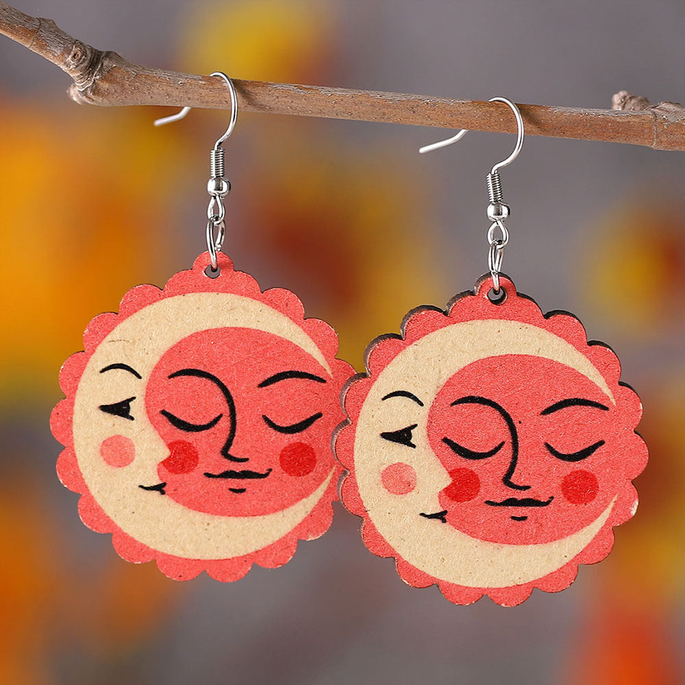 Wholesale Mother's Day Mom Earrings Double Sided Printed Wooden Sunflower Earrings