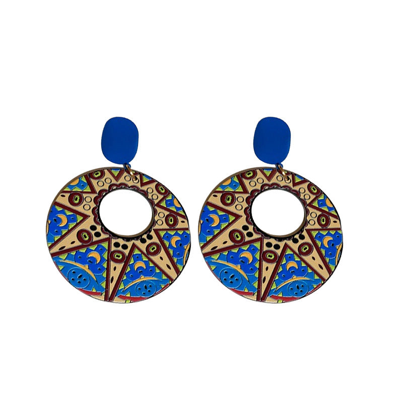 Wholesale Silver Needle French Oil Painting Sunflower Earrings