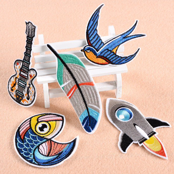 Wholesale DIY Embroidery Fabric Patches Fish Swallow Clothes Hat Accessories