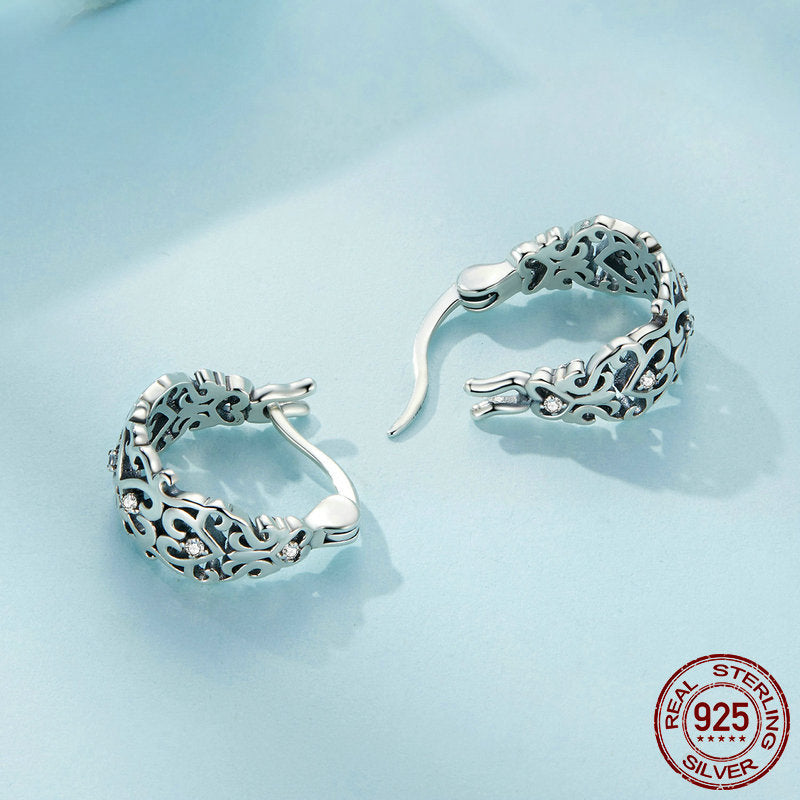 Wholesale 925 Sterling Silver Vintage Pattern Hollow Earrings