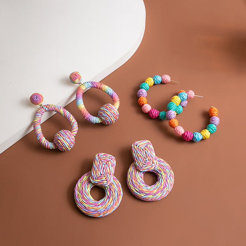 Wholesale Bohemian Colorful Hand Made Raffia Earrings