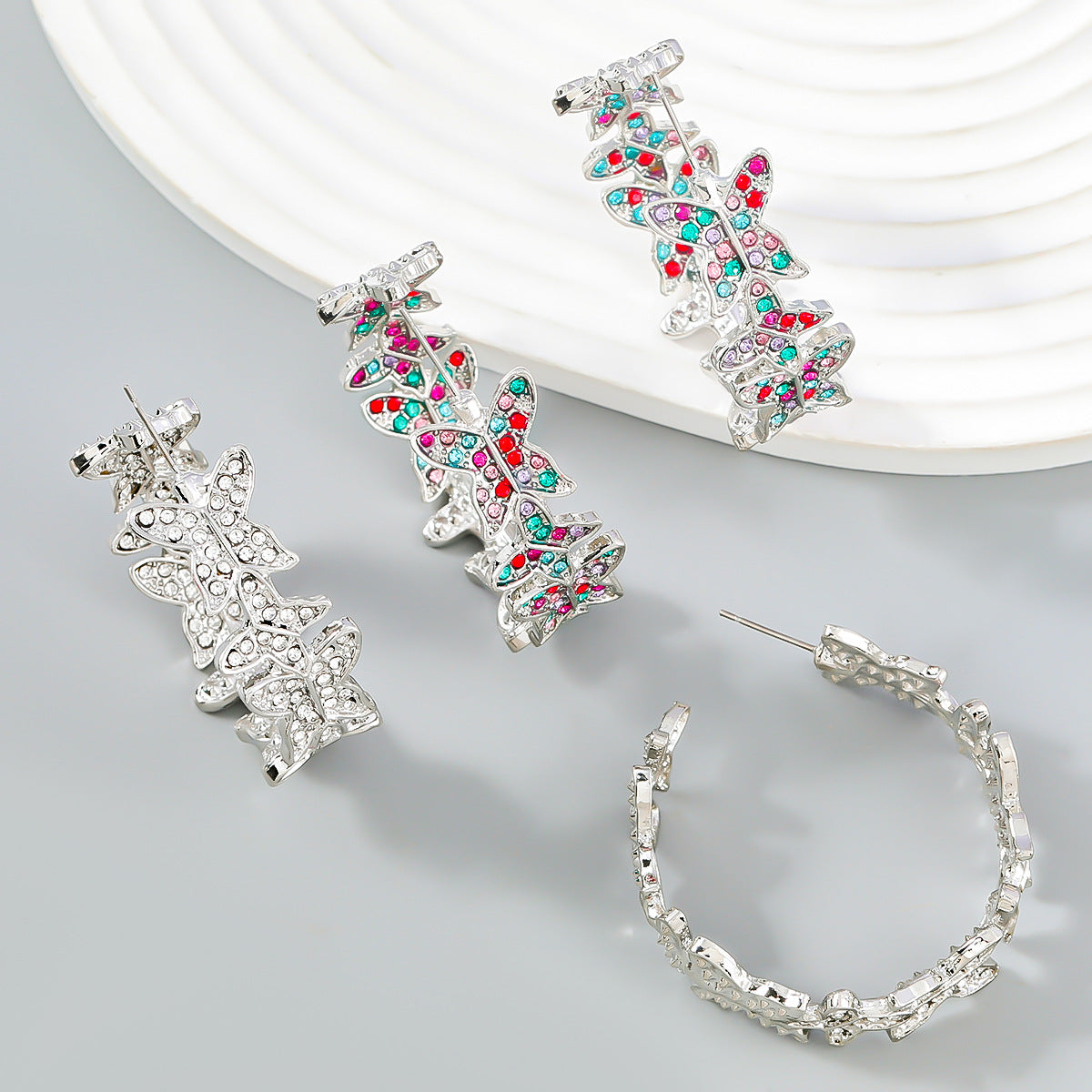 Wholesale Colored Diamond Butterfly Alloy Earrings