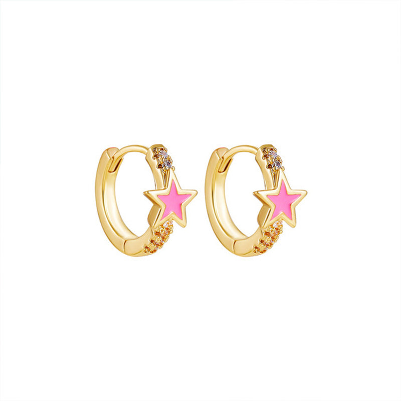 Wholesale Earrings Brass Pentagram Star Circle Circle Niche Design OLY-ES-BJ003
