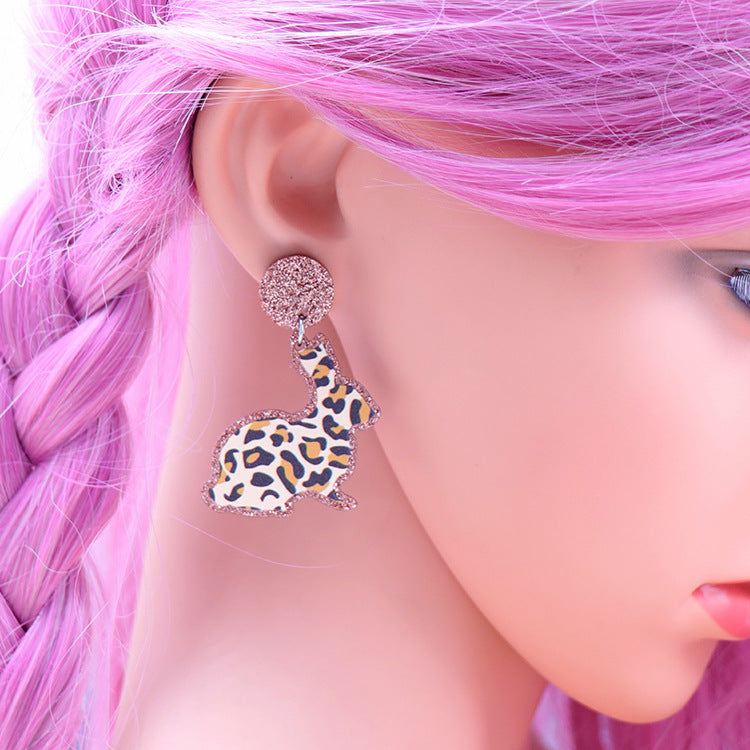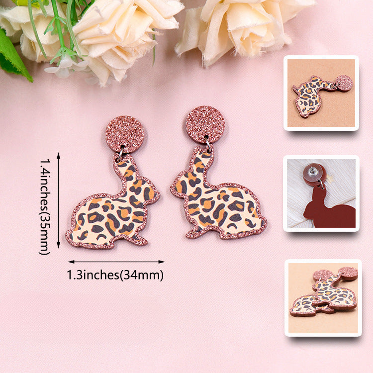 Wholesale Easter Leopard Print Rabbit Acrylic Earrings