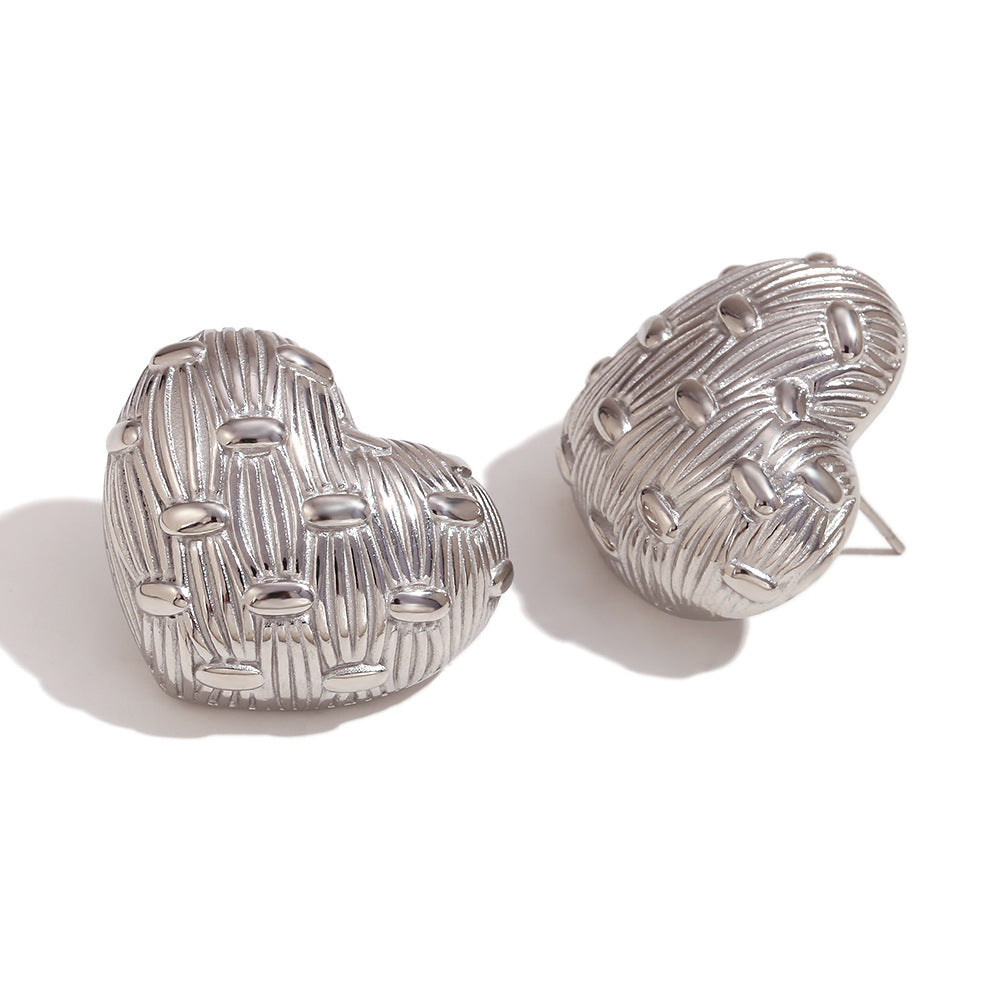- Semi-inlaid rectangular earrings-steel-white diamond