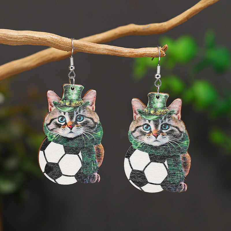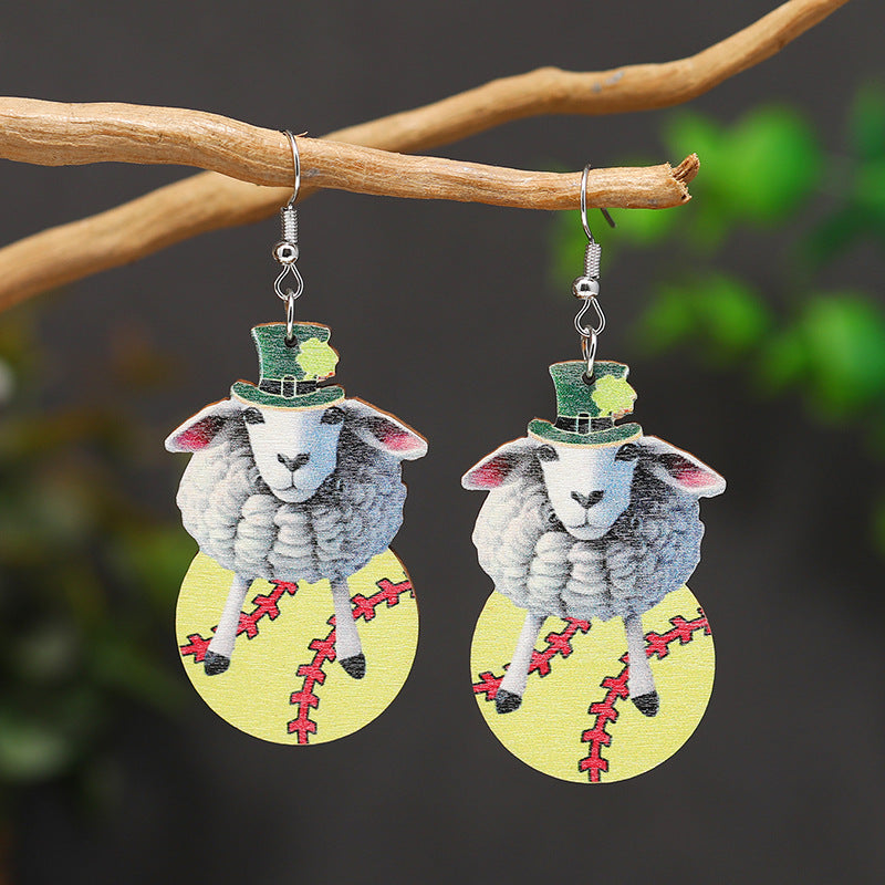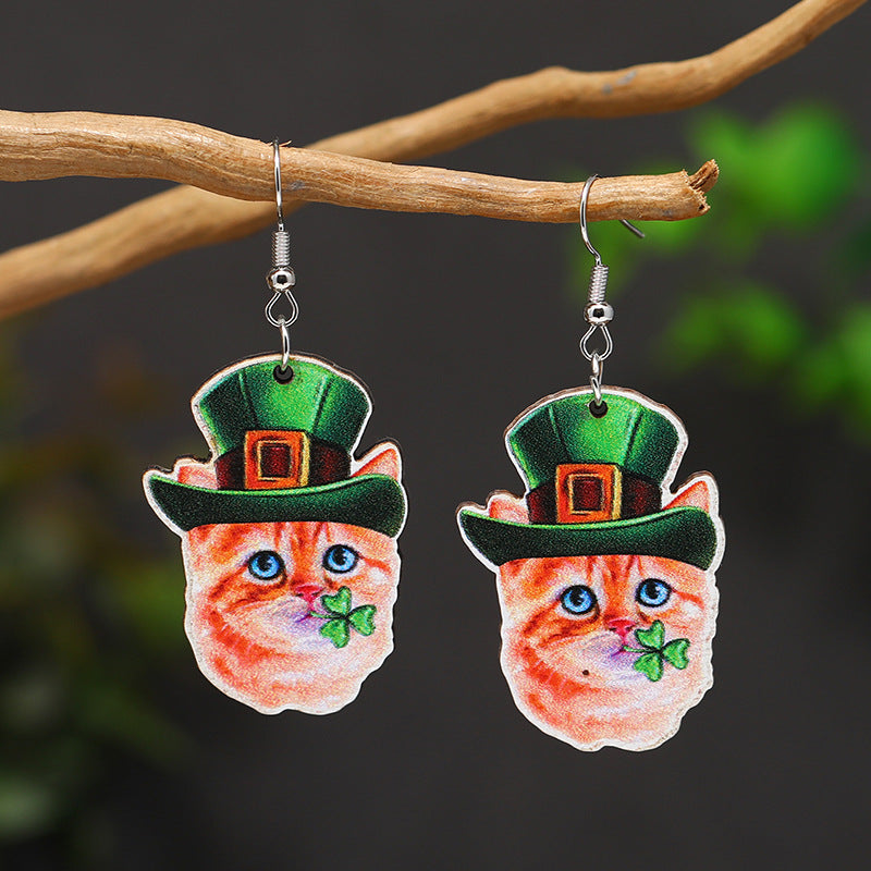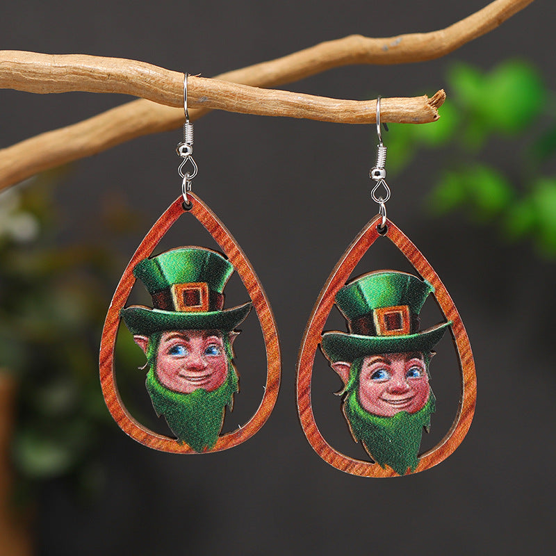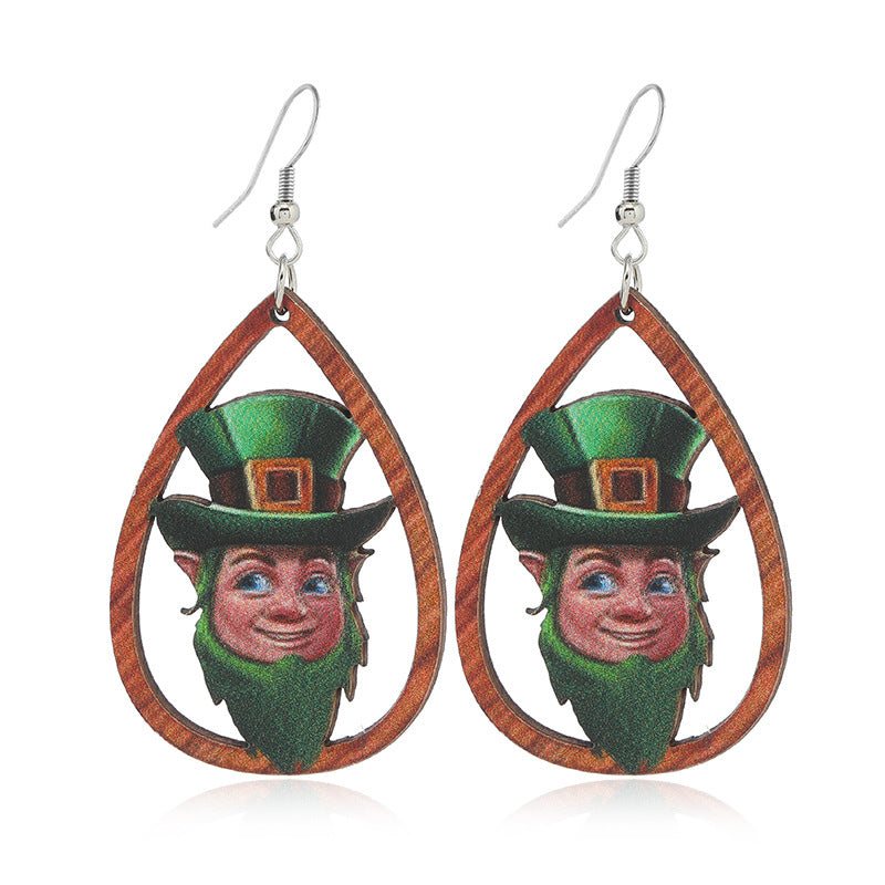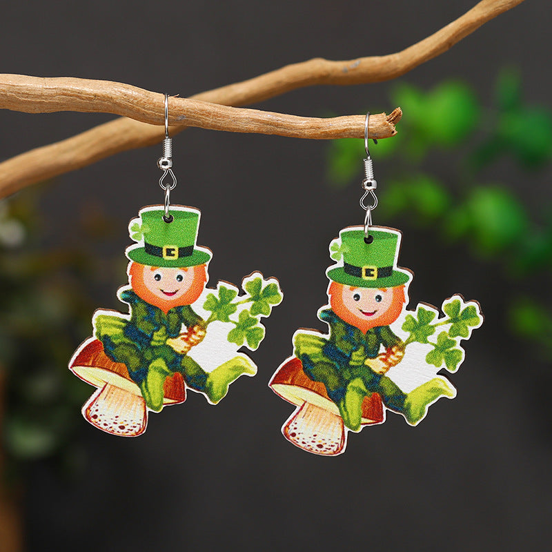 Wholesale Patrick's Day Four Leaf Clover Cartoon Wooden Earrings