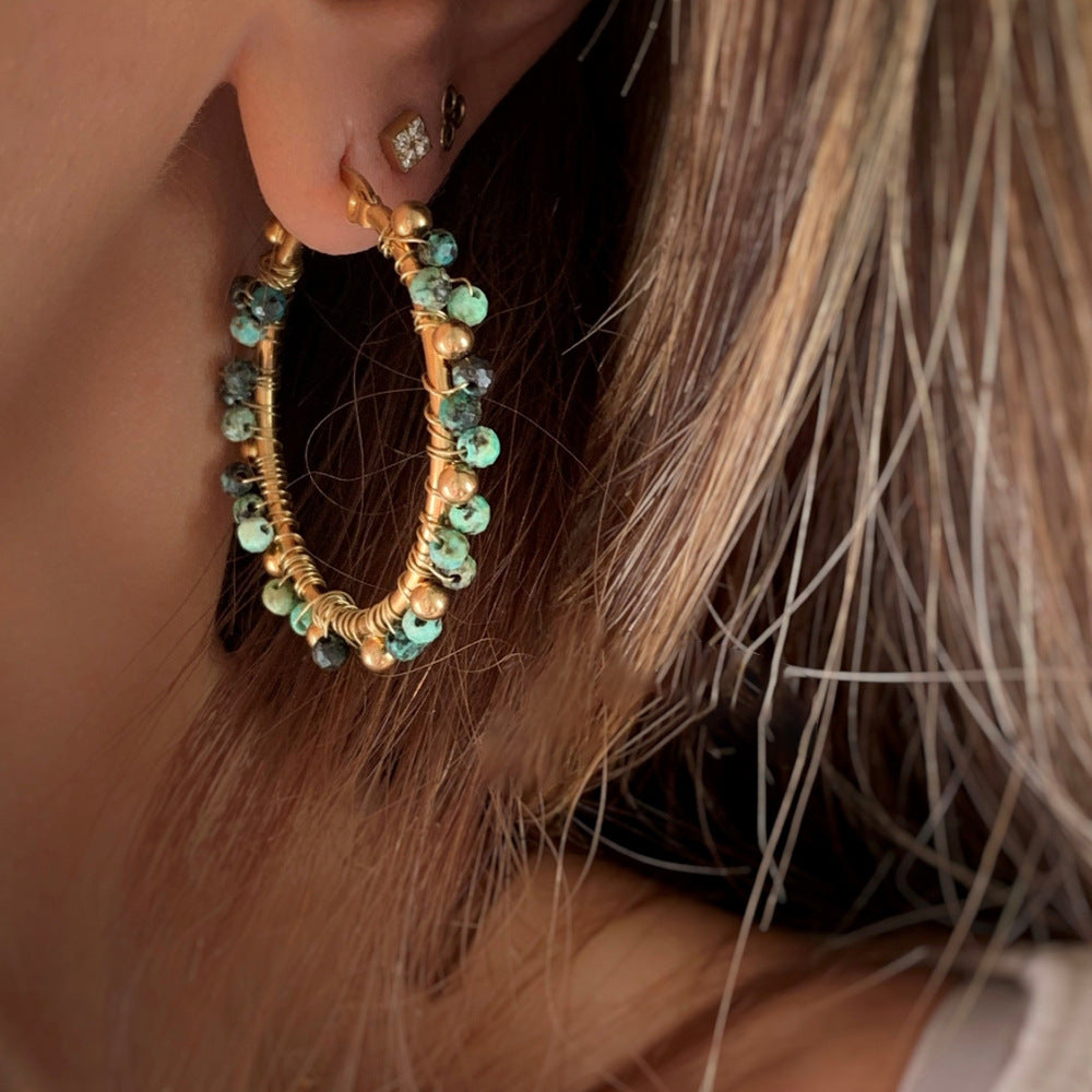 Wholesale Vintage Crushed Stone Stainless Steel Earrings
