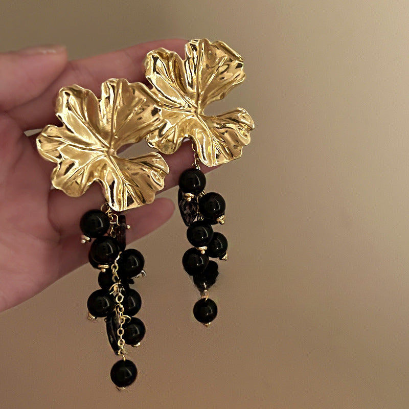 Wholesale Vintage Flower Beaded Tassel Alloy Earrings