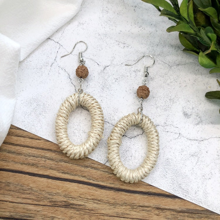 Wholesale Vintage Rattan Weaving Handmade Bohemian Earrings