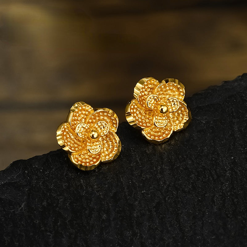 Wholesale Vintage Rose Flower 24K Gold Alloy Earrings